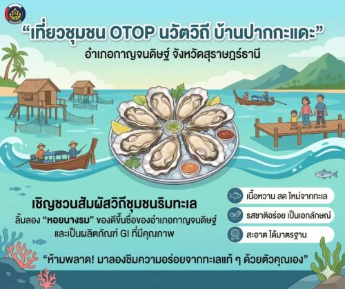 🦪 ไฮไลต์ห้ามพลาด! หอยนางรมสดจากแหล่งคุณภาพ ของดีประจำอำเภอกาญจนดิษฐ์ ที่ขึ้นชื่อจนเป็นส่วนหนึ่งในคำขวัญของจังหวัดสุราษฎร์ธานี การันตีคุณภาพด้วยมาตรฐาน สินค้า GI (Geographical Indication)