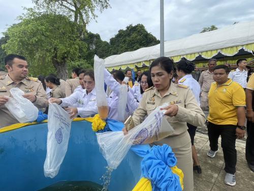 ในการนี้ นางสาววิรินทร์ญา โชติพัฒนสินชัย พัฒนาการอำเภอกาญจนดิษฐ์ และเจ้าหน้าที่พัฒนาชุมชน เข้าร่วมกิจกรรมในการปล่อยพันธุ์สัตว์น้ำกุ้งกุลาดำ จำนวน 300,000 ตัว ซึ่งกิจกรรมในครั้งนี้ มีวัตถุประสงค์เพื่อเพิ่มปริมาณทรัพยากรสัตว์น้ำในแหล่งน้ำธรรมชาติ และเพื่อสร้างความมั่นคงทางอาหารเพิ่มอาชีพและรายได้ให้แก่ชุมชนประมง รวมถึงเป็นการส่งเสริมการอนุรักษ์และดูแลรักษาสิ่งแวดล้อมตามธรรมชาติในครั้งนี้